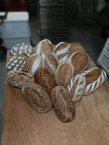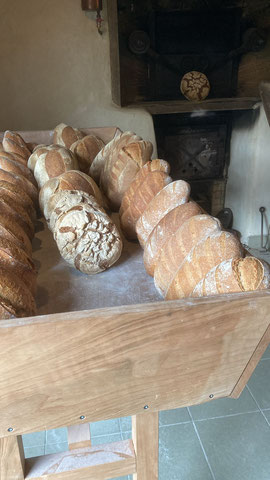 Fournil au feu de bois, pétrissage à la main 100% Levain, Farine Locale Bio (Domfront, Les Farines de La Touche).